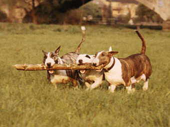 Durch hoheitliche Auflagen bedingt, kreuzte die Landbevölkerung im Mittelalter in England kleinere Schläge ein, so daß nach und nach - neben den Molossern - die heutigen , kleineren Rassen dieser Art entstanden. Obwohl in diesen Rassen noch das Erbgut vorhanden ist, werden diese Tiere zu Unrecht angeprangert. Richtig erzogen, bestechen diese Tiere durch ihre Gutartigkeit und Freundlichkeit (so auch Wilcox und Walkowicz in "Hunderassen der Welt").