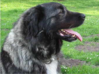 Ivo im Alter von 1 ½ Jahren Die Lösung des Problems sollte eine Partnerin für Ivo sein: möglichst eine Nichtverwandte, damit vielleicht ein Wurf Welpen geplant werden könnte. Abnehmer wären sicher dagewesen, denn Ivo war mit seinem Aussehen schon eine Seltenheit in unserer Gegend. Bemerkungen, wie: "Dieser Hund muß aber alt sein, so grau wie der aussieht!" hörte ich öfter und erklärte dann immer die Rassebeschreibung und Eigenschaften eines Hirtenhundes, die ich mittlerweile fast auswendig kannte. Unter Vermittlung des Rassezuchtvereins habe ich dann im Oktober 1996 Riva aus Kroatien bekommen (ihr wird natürlich ein eigenes Portrait gewidmet). Unser Ivo begrüßte sie aufs freundlichste und schien sich sichtlich zu freuen, von nun an nicht mehr allein zu sein.