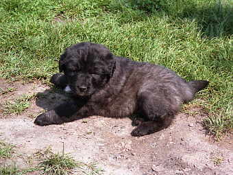 Foto: Dorette Knobbe Ivo, der "Wander"hirte "Ein Hund muß her!", diese - zugegebenermaßen vernunftgesteuerte - Entscheidung traf ich 1995. Aber es sollte nicht irgendein Hund sein, sondern einer, der am besten immer draußen bleiben kann, auf dem Hof und bei den Tieren. Mehrere Vorkommnisse auf unserem Bauernhof, z. B. Diebstahl der Weidezaungeräte, Einbrüche und versuchte Brandlegung im Stall, Diebstahl mit anschließender Tötung eines Kaninchens aus dem Stall, bis hin zu einem Anschlag auf eines unserer 4 Pferde mit einem langen Messer in die Brust ließen diese Entscheidung reifen. Bekannte empfohlen uns Deutsche Schäferhunde oder Altdeutsche. Die erstgenannten kamen für uns nicht in Frage, weil uns die gezüchtete Statur nicht gefiel, und der andere ist vom Wesen mehr ein Hütehund. Diesen bräuchten wir nicht, weil die Robustrinder zwar wechselnd doch immer auf der Weide "fest" standen und nicht getrieben werden müssen. Bis natürlich auf die Tierarztuntersuchungen oder zum Verkauf oder Schlachtung, aber da haben wir nun auch unsere Tricks, sie in den Treibgang zu bekommen. Nachdem alle gängigen Hundezeitschriften durchstudiert waren, habe ich eine Hunderasse gefunden, die mir optisch sehr gefiel und in der Rassebeschreibung dann keinen Wunsch mehr offen ließ: Der Sarplaninac. Damals kannte ich die vielen verschiedenen Hirtenhunderassen noch nicht, und wenn mir damals ein Text über Maremmano oder Estrela in die Hände gefallen wäre, hätte ich wahrscheinlich diesen Hund gewollt. Zum zuständigen Zuchtverein war schnell ein Kontakt hergestellt. Diese sandten mir eine Liste mit Züchtern zu, aus denen ich mir die beiden nächstgelegenen heraussuchte. Erst besuchte ich eine Züchterin bei Halle, die dann aber nicht so schnell Welpen haben würde, und dann einer Familie in Hettstedt, die gerade 4 Wochen alte Welpen hatten. In einer Gartenanlage, grenzend an ein Plattenbaugebiet, hatten die Züchter ihren "Hundegarten". Eine Zucht von Berner Sennenhunden sowie drei Sarplaninac, eine Hündin und zwei Rüden, waren vorhanden. Ehrlich gesagt, war ich ein wenig enttäuscht, da ich mir die Hunde wie im Zeitungsartikel beigefarben vorgestellt hatte. Was ich hier sah, waren dunkle, eisengraue Typen. Aber schließlich dachte ich sind wir hier nicht im Versandhaus, und ich nehme jetzt, was da ist. So fiel die Wahl auf den einen, der äußerlich aus der Reihe fiel, den Ivo mit dem weißen Latz. Aber noch war es nicht so weit, denn der Welpe mußte noch ein paar Wochen bei seinen Eltern bleiben.