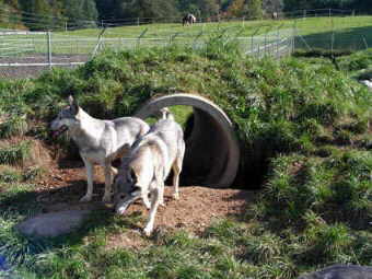 Diese sogenannten "Wolfshybriden" bestehen derzeit aus Yuma, der Mutterhündin und deren 4 Welpen die mittlerweile ca. 3 Jahre alt sind. Wo die anderen sind weiß ich nicht, vermutlich ist die eine Huskyhündin, die wohl auch Junge bekommen hat in der Halle."