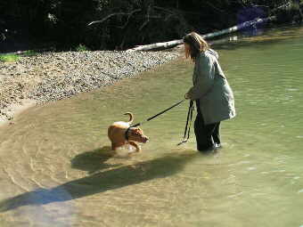 Sugar ist immer an der Leine, auch mit Christiane Rohn in und an der Arge