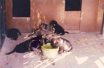 Vor den Hütten stand ein Vordach, ca. 2 Meter breit, damit war der gesamte Zwinger zu zwei Dritteln überdacht, trotz verschärfter Bestimmungen für das Halten von Hunden im Freien, wäre das auch heute noch, über 20 Jahre später, vorbildlich.