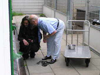 Wolfgang Poggendorf ... .. ist der "Gutmensch von Hamburg". Und er redet gerne und viel, getreu dem Motto: Tu gutes und sprich darüber. So ließ ich ihn reden. Poggendorf liebt Tiere und von Hunden versteht er sehr viel. Dazu möchte ich erinnern an die Meinungen des NDR Mitarbeiters und Frau Rohn, anlässlich des Abtransportes von Sugar. In der Vergangenheit hat er oft genug bewiesen, daß er für die Einschläferung eines Tieres natürlich nicht ist. Erinnern möchte er daher an die so genannten Kampfhunde in den Harburger Hallen. An deren Rettung war der Tierschutzverein Hamburg maßgeblich beteiligt. Unter anderem mit dem Einsatz von viel Geld, er spricht von über 100.000 Euro. Das den Mitgliedern zu vermitteln, sei nicht einfach gewesen, denn obwohl er mit "Honecker- Wahlergebnissen" bei den Vorstandswahlen aufwarten kann, regte sich Widerstand in der Mitgliedschaft. Diese Geschichte ist mir anders in Erinnerung. Nämlich so, daß zahlreiche Privatpersonen und Tierschutzvereine und Organisationen unter Einsatz ihrer Geldmittel eine sehr hohe Anzahl von Hunden herausgeholt haben und diese auf Plätze bis ins benachbarte Ausland vermittelten. Von Schoß zu Schoß, diesmal bei unserer Tochter Wir würden uns daher freuen, wenn wir Leserbriefe bekämen, die etwas zu diesem Sachverhalt beitragen können. Sugars Gefährlichkeit brauche man ja nicht noch einmal erwähnen, meint Poggendorf, darüber habe die Presse oft genug berichtet. Mein Einwand, diese sei nicht immer besonders objektiv, akzeptiert er. Und im Vertrauen unter uns gesprochen, man wisse ja, dass diese Republik nicht von der Politik, sondern von den Medien regiert würde. Daher sei er auch nicht immer einverstanden mit dieser und im Falle der Kampfhunde sei die Berichterstattung schon sehr reißerisch gewesen. Verhindern konnte er das aber nicht Lediglich mit dem Abendblatt sei eine gute Zusammenarbeit möglich gewesen. Wie eine solche aussehen kann, möchte ich im Kapitel "Warum das Ganze" beschreiben. Auch über die Kosten und Gerichtsverfahren haben wir uns unterhalten. Diese seien nicht zu rechtfertigen und wäre es nach ihm gegangen, hätte man das Ganze billiger haben können. Es ist sicher nicht verwunderlich, wenn ich auch hier eine andere Meinung habe. Einiges hat er mir verschwiegen, z.B., daß er darüber informiert sein musste, dass per Gerichtsbeschluss ein weiterer "Kampfhund" an die Besitzerin zurück gegeben werden muss. Auch hier hatte Poggendorf eine andere Einstellung als das Gericht. Dazu veröffentliche ich einen Brief, der unmittelbar nach der Herausgabe aus dem Tierheim in der Süderstrasse veröffentlicht wurde mit der Genehmigung des Autors: