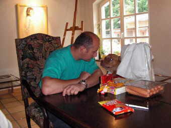 "Ich will an den Tisch..." Die Zukunft Sugars Zukunft ist gesichert und auch der Rüde Chico kann nach 4 Jahren "Einzelhaft" wieder ein normales Leben führen. Denn so, wie sich Tierarzt Schrader darstellt, zählt er nicht zu den Duckmäusern, sondern zu denen, die "Unrecht" benennen. Aber etwas anderes möchte ich in Bezug auf die beiden und weitere Hunde ansprechen, nämlich ihre finanzielle Absicherung. Krass ausgedrückt, hat Christiane Rohn seit der Aufnahme von Sugar Nachteile. Sie wird bedroht und Spenden sind rückläufig. Das kann nicht angehen. Daher werde ich diesen Artikel überall zur Veröffentlichung anbieten, Internetforen, Mailinglisten, Rasseclubs, Tierschutzvereinen usw. Und ich will auffordern, Christiane Rohn zu unterstützen. Das heißt "Butter bei die Fische", also Spenden oder Fördermitgliedschaft im Verein. Wenn unsere Familie nicht schon Fördermitglied im Verein "Lebenswürde für Tiere" wäre, würden wir spätestens jetzt eintreten. Aber wir werden noch mal eine Spende überweisen. Wer unsere Zeitung gelesen hat, wird sich erinnern, daß wir ab diesem Jahr einen Preis vergeben wollen für gute "Tierschutzarbeit", nämlich: "Pro-Hirtenhunde-Preis". Für das Jahr 2005 ist Christiane Rohn die "heißeste Anwärterin". Und es gibt noch eine Möglichkeit, den Gnadenhof zu unterstützen, nämlich durch den Kauf des Buches von Christiane Rohn. Wer bei ihr anruft, hat in der Regel am übernächsten Tag dieses in der Post. Eine Buchbesprechung haben wir veröffentlicht, denn wir halten es für eines der besten Fachbücher seit vielen Jahren. Lesen könnten das z. B. auch eine ganze Reihe der Journalisten/innen, die fachmännisch Sugar beurteilt haben. Laut Presse gibt es in der Süderstrasse noch eine weitere Reihe von Hunden, denen ein ähnliches Schicksal wie Sugar und Chico droht. Wir fordern daher alle "Hundeverrückten" auf, beim Tierschutzverein und den Fraktionen der Bürgerschaft zu protestieren. Nur eine wachsame Öffentlichkeit kann verhindern, daß evtl. diese Hunde sterben müssen. Christiane Rohn sagte mir, hätte sie mehr Platz, würde sie auch diese Hunde nehmen.