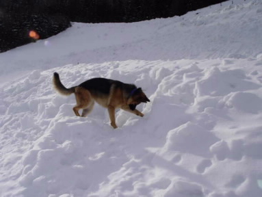 Retter auf vier Pfoten Die Ausbildung von RettungshundenFoto: Österr. Suchhundestaffel Vorwort Vor ein paar Jahren las ich, ein Kaukase solle zum Rettungshund ausgebildet werden. Toll, dachte ich, denn mit der natürlichen Neugier der Hirtenhunde macht ihm das sicher auch noch Spaß und ein bisschen Spaß muss sein. Leider wurde diese Ausbildung abgebrochen, denn der Hund hatte HD. Unterdessen gibt es aber weitere Versuche einer derartigen Ausbildung und ein Do-khyi hat sie erfolgreich abgeschlossen. Foto: Michaela Richter Und es gibt natürlich unzählige andere Hunde und Rassen, die eine Arbeit tun, die auch heute noch mit modernsten Hilfsmitteln nicht so erfolgreich ist, wie ein „Arbeitshund“. Dieser Arbeit gebührt Respekt. Hier also der Artikel: Retter auf vier Pfoten Wer hat nicht schon Medienberichte nach Lawinen oder Erdbeben gelesen, die davon erzählen, wie sich Hunde auf die Suche nach vermissten bzw. verschütteten Personen machen. Auch wenn ältere Personen oder Kinder plan - und orientierungslos in manchmal sehr unwegsamem Gelände umherirren, kommen diese Hunde zum Einsatz. Diese Arbeit der Hunde nennt man Flächensuche. Wie bringt man aber die Hunde dazu, diese lebenswichtige Arbeit zu verrichten? wahrscheinlich der schönste Anblick für einen Verschütteten Was in solchen Situationen von den Rettern auf vier Pfoten erwartet wird, ist wahrhaftig "unmenschlich", denn keinesfalls wären wir ohne unsere pelzigen Gefährten auch nur annähernd in der Lage, solche Meisterleistungen zu vollbringen. Selbst bestens ausgerüstet mit diversen technischen Geräten sitzen uns immer die viel zu rasch ablaufende Zeit und das häufig immer noch fehlende Vertrauen in das Können des Lebewesens Hund im Nacken. Die Technik ließ Betroffene leider oft im Stich, der treue Begleiter jedoch nicht. In manchmal schwer begehbarem Gelände, im Wald, bei Dämmerung, in der Nacht und mit dem zusätzlichen Druckfaktor Zeit hat er immer noch unumstritten die Nase vorne! Arendt bei der Trümmersuche Wie bringt man jedoch einen Hund dazu, eine wahrscheinlich wildfremde Person zu suchen?Da Rettungshunde nicht einer Fährte mit tiefer Nase folgen, sondern stöbernd arbeiten, ist der menschliche Geruch des Vermissten nicht notwendig. Hierbei nutzen wir den Beute - /Spieltrieb sowie den Such - und Stöbertrieb des Hundes. Die vernünftige Förderung dieses Triebes durch den Halter ist also wichtige Voraussetzung und Bestandteil der Ausbildung. Diesen zu kontrollieren ist enorm bedeutungsvoll, denn wildernde Hunde können zu dieser Arbeit nicht zugelassen werden. Ob wild herumfliegende Blätter, aufgescheuchte Hasen oder Rehe - all dies darf den Hund in der Arbeit nicht irritieren. Im Training wird der Hund gelehrt, dass es das Tollste auf der Welt ist, Menschen zu finden. Die gefundenen Personen, die die Opfer simulieren, belohnen mit Spiel oder Leckerbissen, der Hund wird dadurch gerne suchen und baut eine so genannte "Opferbindung" auf. Diese ist wichtig, denn - egal, was passiert, ob die Person ängstlich, aggressiv oder leblos ist - der Hund muss den Gefundenen sicher anzeigen. Rettungshund beim Anzeigen des Vermissten Anzeigearten des RettungshundesDer Rettungshund hat verschiedene Möglichkeiten, den Fund des Opfers anzuzeigen: Bellende Anzeige Der Hund zeigt durch lang anhaltendes Bellen dem Hundeführer das Opfer an. Dadurch ist es dem Hundeführer möglich, den Ort des Opfers zu lokalisieren, auch wenn dieser nicht mehr im Sichtfeld des Führers ist. Blick aus Sicht des Vermissten BringselanzeigeAm Halsband des Hundes ist ein sog. Bringsel angebracht. Bei Fund des Opfers nimmt er diesen kurzen festen Lederriemen ins Maul, läuft zum Führer zurück und signalisiert damit die Auffindung. Rückverweiser oder Freiverweiser Nach Entdeckung des Opfers läuft der Rettungshund zu seinem Hundeführer zurück und holt diesen sozusagen ab. Der Hund pendelt so lange zwischen Opfer und Hundeführer hin und her, bis das menschliche Auge den Vermissten entdeckt hat. scharrende Anzeige Scharrende Anzeige Diese wird häufig bei der Lawinensuche eingesetzt. Natürlich zeigt der Hund durch Scharren lediglich den Aufenthaltsort des Opfers an, es wird nicht durch den Vierbeiner ausgegraben. Diese Aufgabe wird dann entweder vom Hundeführer bzw. von Helfern übernommen. Wie überall gibt es auch zwischen den verschiedenen Anzeigearten Vor - und Nachteile. Der Eigenheit des Hundes ist dabei aber größte Bedeutung zu schenken.