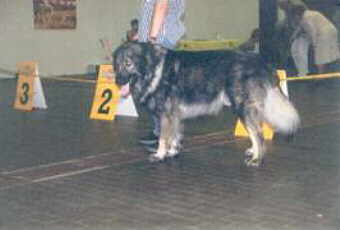 IRAS Stuttgart 24./25. August 2002 Pyrenäenberghund (Foto Hartmut Deckert) Der Hunde wegen ...Landesverband Baden-Württemberg für Hundewesen e.V." Aus einem Vorwort des VDH: ..."hat die IRAS, die internationale Rassehunde - Ausstellung Stuttgart über die Grenzen Baden - Württembergs hinaus einen hervorragenden Ruf erworben und zählt zu den schönsten Ausstellungen für Hunde aller Rassen in Europa." Beispiele: Eintritt 5.- , Parken für weniger als 5 Stunden 6.-, eine nicht besonders gute Thüringer 2,80 und dazu eine Cola für 1,80 . Stolze Preise, schlechte Qualität, Stuttgart hatte schon mal mehr zu bieten. Hat es sich wenigstens gelohnt? Antwort NEIN, derart schlechte Hunde habe ich in den vielen Jahren der Ausstellungen auf dem Killesberg noch nie gesehen. Zwar sehr oft schon Schatten, aber dazwischen immer auch ein Licht oder wenigstens ein Lichtlein in der Vergangenheit. Wohlgemerkt, ich spreche nur für "meine" Hirtenhunde, andere Rassen habe ich mir kaum angesehen. Schön der Reihe nach und beginnend mit kaukasischen Owtscharka. Einer war gemeldet, "Chacco von der Rudeljahne", WT 17.07.01. Ein Kaukase der "Extraklasse", viel zu groß und zu lang, zu langer und schmaler Kopf, fast eine deutsche Dogge. Dazu völlig apathisch, keinerlei Temperament, aber er sei absolut lieb, sagten seine Besitzer. Bewertung: "sg1", eigentlich wollte der Richter wohl ein "g" geben, Augen zugedrückt und daher "sg". Chacco von der Rudeljahne Deutliche Steigerung bei den Sarplaninac. Gemeldet insgesamt 8 Hunde. Fangen wir mal mit der Champion Klasse Rüden an. "Bak von den Rißnebeln", WT 18.07.97, Züchterin Claudia Müller aus Biberach, zu groß, zu fett und unharmonisch. Schlicht ein Koloss ohne Ausstrahlung und Esprit. Gänge ohne jeden Schub, Kopf zu schmal, zu lang und ebenfalls völlig desinteressiert. V1 und BOB. "Ergela od Planinske Vestice", CH Champion, Int. Champ. Wie seine Geschwister glänzte er mit einem total deformierten Unterkiefer, dazu fehlten einige Zähne. Sarplaninac (Foto Hartmut Deckert) Rüden offenen Klasse: "Eclipse od Planinske Vestice", ebenfalls ein wahres Schmuckstück, Zahnfehler, Entengänge und gelegentlich einen Ausbruch von Temperament der sich in einem müden Beller äußerte. "Bimbo", ein Rüde aus Serbien. Der Besitzer stellte 2000 einen jungen Rüden aus, der mir ganz gut gefiel. Diesmal "Bimbo", decken wir das Mäntelchen des Schweigens über ihn. Wenigstens war er der "Einäugige" unter den Blinden, nur gewonnen hat er nicht. Alle Hündinnen zu erwähnen lohnt nicht, eine schlechter als die andere. Erwähnenswert allerhöchstens noch die Wurfgeschwister Cresak und Cavka von den Rißnebeln. 2 Jahre alt und derart weit von einem Sarplaninac entfernt, daß selbst ich froh war, anhand des Kataloges zu wissen, was da vorgeführt wurde. Klein, unharmonisch und ohne jede Substanz. Und natürlich auch zu erwähnen, die Hunde wirkten wie tot. Derart schlechte Vertreter der "Helden der Sar Planina" habe ich noch nie gesehen. Ein trauriges Kapitel deutscher Sarplaninac Zucht. In Jugoslawien wären sie bei jeder Ausstellung aus dem Ring geflogen oder hätten letzte Plätze belegt. Wer schon mal die Hunde in Smederewska Palanka gesehen hat, weiß, wovon ich rede. Nicht nachvollziehen konnte ich daher die Entscheidungen des Richters Kurt Gendrung. Zwar sehe ich ein, daß der VDH an Meldegebühren interessiert ist, aber auf diese Art und Weise Euros einzunehmen, ist unanständig. Wenn dann mit insgesamt dreimal alle Augen zugedrückt ein Rüde wie Bak auch noch einen Titel bekommt, verstehe ich die Welt nicht mehr, denn damit wird den Hunden und der Zucht nun wirklich kein Gefallen getan. Die Folgen sind leicht auszumalen, die Zucht geht, sofern es überhaupt noch möglich ist, immer weiter den Bach hinunter. Andere Rassen besser? Nein, auch nicht. Kuvasok, die aussehen wie weiße, gelockte Windhunde, Pyrenäenberghunde mit Glubschaugen und offenen Augen, Kolosse ohne jede Harmonie. Angeschaut habe ich mir noch Bobtail. Wann hört diese perverse Toupierung der Är.... endlich auf, nur weil im Standard steht, die Hinterhand müsse deutlich hoch stehen? Als Richter würde ich mir derartige Manipulationen nicht gefallen lassen. Eigenartigerweise werden Bobtail fast nur noch von Frauen vorgeführt. Die kleinen Schmankerl am Rande dürfen auf einer Ausstellung natürlich auch nicht fehlen und ein besonderes habe ich zu bieten. Irgendwann kommt mir eine Frau entgegen, an der Strippe einen Sarplaninac, ich spreche sie an und frage ob der Sarpi gemeldet sei. Sei er nicht und er sei auch kein Sarpi. Heftige Diskussion, ich sei doch nicht blöde oder vielleicht doch und das sei und sei doch kein Sarplaninac usw. Die Auflösung, natürlich ist er ein Sarplaninac, ohne Papiere und als Zweifel auftauchten, ob er vielleicht doch zur Fakultät der Kaukasen gehört, stellte ihn die Besitzerin beim "kaukasischen Owtscharka Club" KOC vor. Und tatsächlich, der Zuchtrichter Bürk erkennt einen reinrassigen Kaukasen. Nach Phänotypbestimmung und Registerpapieren daher Kaukase, nur bleiben wird er immer ein Sarplaninac. Schade, daß die Besitzerin ihn nicht als Kaukasen gemeldet hat, die Bewertung wäre spannend geworden. Das war die "IRAS" Stuttgart im denkwürdigen Jahre 2002. Als ich nach Hause kam, fragte meine Frau, wie war's? Antwort: es war's letzte mal und es war's Geld zum Fenster rausgeschmissen und so was tut ein Schwabe eigentlich nicht. Nachsatz. Frage ich am Montag einen Kollegen, wie es denn ihm gefallen hat, Antwort, besch...., er hat sich bei den Schweizer Rassen umgeschaut, denn er hat eine Berner Sennehündin. Noch ein Nachsatz. Leider sind fast alle von mir gemachten Fotos nichts geworden, denn natürlich wollte ich diese Prachtexemplare auch zeigen. Die wenigen schlechten sollen aber trotz miserabler Qualität hier veröffentlicht werden. Hartmut Deckert