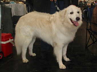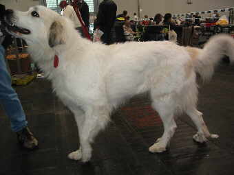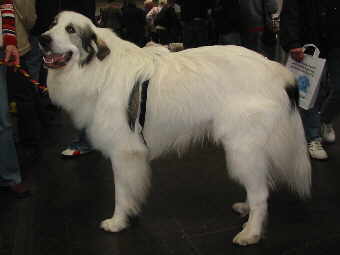 Bobtail So ein Toupierkult ist nicht mein Geschmack, und auch der ursprünglichen Rasseverwendung nicht dienlich - doch die Vielzahl der ausgestellten Tiere ließ auf eine große Fan-Gemeinde schließen. Noch während der Suche nach den beiden betreffenden Ringe für Kuvasz, Pyrenäen-Berghund und Owczarek Podhalanski begegnete uns der erste "Weiße", eine "Pyri"-Hündin, die uns dann später noch öfters über den Weg lief.