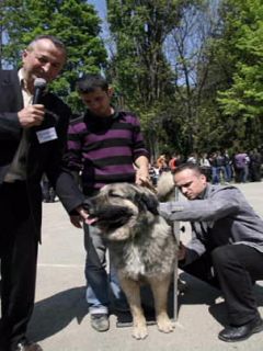 Es ist mir nicht bekannt, ob der 1. Mai als Feiertag im Kosovo die gleiche Bedeutung hat, wie in Deutschland. Aber mindestens der 3. Mai war für den kynologischen Verband des Kosovo, für die zahlreichen Züchter und Halter des Deltari Ilir ein besonderer Tag. An diesem nämlich fand die erste Ausstellung des Verbandes seit seiner Gründung statt. Bisher wurden die Hunde gelegentlich auch schon gezeigt, aber immer in Verbindung mit landwirtschaftlichen Veranstaltungen oder im Rahmen allgemeiner Tierschauen. Am 3. Mai war es anders. Veranstaltet wurde die Schau in Peja im Westen des Kosovo gelegen, mit schätzungsweise 180 000 Einwohnern. Seit einigen Jahren ist die Stadt das „Zentrum“ der Deltari – Zucht. Aber auch taktisch war diese Gemeinde gut gewählt, denn zur Grenze Montenegros sind es nur etwa 10 Kilometer und zur albanischen Grenze ist es auch nicht viel weiter. Für mein Verständnis von einer Ausstellung, oder ihrer Wertigkeit war diese etwas besonderes, davon später mehr. Das kosovarische Fernsehen KTV berichtete über eine wirklich gut besuchte Veranstaltung, wenn man eben berücksichtigt, es war das erste mal Ziemlich genau 120 Deltari Ilir waren gemeldet, davon ca. 20 Hündinnen. Unter den Besuchern drei aus Serbien, was hoffen lässt. Etwa ebenso viele aus Kroatien und Montenegro und selbst Besucher aus Ungarn und Mazedonien wurden begrüßt, genauso wie übrigens serbische Bosniaken. Auf Nachfrage stellte sich heraus, auch Mitarbeiter verschiedener Ministerien ließen sich dieses Spektakel nicht entgehen. Insgesamt waren nach Schätzungen des kynologischen Verbandes über 1000 Besucher nach Peja gekommen, darunter zahlreiche Kinder und denen konnten die Veranstalter die Kinderfreundlichkeit der Hunde an Ort und Stelle „beweisen. Unter den Gästen auch Faruk Aguchi aus Klina, einer der besten Züchter des Landes Viele der Hunde wurden noch nie ausgestellt, daher ergab sich natürlich auch ein Bild der Hunde im Lande, das man bis dahin nicht kannte. Die Wertung Wie schon geschrieben, etwa 120 Deltari wurden gerichtet, aber nicht im Sinne einer herkömmlichen Ausstellung. Denn die Veranstalter und Richter hatten sich etwas anderes ausgedacht. Sie bewerteten alle vorgestellten Hunde mit einer Punktzahl, die sich theoretisch von Null Punkten bis 100 Punkte bewegte. Das heißt dann, Hunde die 90 – 100 Punkte erreichten, gelten als sehr gute Hunde, entsprechend ging die Scala nach unten, je weniger Punkte umso „schlechter“ der Hund. Das besondere daran, mehrere Hunde konnten die Höchstpunktzahl erreichen, denn es sollte keinen Sieger geben. Sondern der „Sinn der Sache“ liegt darin, zu ermitteln, welche Hunde jetzt und zukünftig für die Zucht geeignet sind. Als ich diese Idee das erste mal hörte, war ich begeistert, denn so etwas gab es bisher auf „Ausstellungen“ nicht. Höchstens Körungen sind damit vergleichbar, aber es gehen eben nicht alle Halter zu diesen, auf Ausstellungen aber schon. Bewertet wurden dieses mal unter anderem das Fell, Zähne und die Größe, genauso wie die Bemuskelung der Läufe und deren Länge. Verzichtet hatte man auf eine extra Bewertung des Charakters, da eben viele Aussteller noch nie auf einer solchen Veranstaltung waren und somit das Bild wegen Unerfahrenheit nicht richtig wiedergegeben werden konnte. Sicher eine gute Idee. Genauso, wie die, Hunde einzeln zu bewerten und nicht im Ring mit mehreren Hunden. So blieb viel Zeit für die Richter und jeden Hund, auch wenn es länger dauert. Als Richter arbeiteten Saud Kajtazi aus Peja, Halim Bazda, Muhamet Nikqi und Hadi Petlla. Vermessen wurden die Hunde von Driton Kongjeli. Alles in allem eine sehr interessante Veranstaltung, die sicher Aufschluss gegeben hat über den Stand der Zucht im Kosovo. Natürlich will der Verband an diesen Erfolg anschließen und daher sind weitere Ausstellungen geplant. Zu wünschen ist aus meiner Sicht natürlich, dass man mit dieser Methode der Bewertung weiter macht, denn damit erfasst man sicher mehr Hunde, als wenn es nur um Sieger geht. Übrigens stellten auch serbische Züchter aus, deren Hunde wurden als Sarplaninac bewertet und daher nicht beurteilt. Gastfreundschaft wird auch im Kosovo groß geschrieben, daher lud der kynologische Verband seine Gäste nach der Ausstellung zu einem Mittagessen ein. Der Wirt hat sich sicher gefreut, denn in dem Restaurant fanden sich mehr als hundert Personen ein, kosovarisch das Ganze eben. Gesponsert wurde dieses Essen von den im Ausland lebenden Kosovaren. Na dann guten Appetit, Prost und zum Wohle, oder auf albanisch Ju beft mir, Gezuar und per Shendet Hartmut Deckert Nachsatz Wir bedanken uns bei Artan Bucaj für die Bilder. Er hat uns eine ganze Menge geschickt und die restlichen kommen in unsere Bildergalerie.