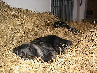 Auch wenn die Erblichkeit der HD noch nicht endgültig erforscht ist, kann man sagen, dass die Wahrscheinlichkeit guter Hüften bei der Verpaarung von HD-freien Elterntieren ansteigt. Bis das Gegenteil bewiesen ist, sollten Zuchtabsichten je nach HD-Befund zurückgestellt oder ganz aufgegeben werden, um gesunde Tiere zu züchten, denen ein Leben ohne größere Leiden bevorsteht. Trotzdem gibt es immer wieder die "Züchter", die aus finanziellen Interessen die Wahrheit manipulieren. So ist es meinen Erkundigungen zufolge möglich, in Holland einen Hund HD-frei "röntgen" zu lassen. Die Frage, ob die Zusammensetzung und Menge des Futters bei der Aufzucht eine Rolle bei der Entwicklung der HD eine Rolle spielt, ist von großem Interesse und teilt die Fachleute in verschiedene Lager. Wie immer, spielt hier das richtige Maß der Dinge eine Rolle. Zu viel (z. B. Kalzium, Phosphor) kann ebenso schädlich sein wie zu wenig (z. B. Kalzium, Phosphor). Untersuchungen zufolge (RESNIK, 1974) tritt bei jungen Hunden, die mit hoch kohlenhydrathaltigem Futter ernährt wurden, eine höhere Rate an dysplastischen Erkrankungen auf, als bei denen mit reiner Fleischnahrung. Die Selbstzubereitung von Futter ist zu begrüßen, hat aber den Nachteil, das man nicht dessen Gehalt an Nährstoffen, Vitaminen u. a. kennt. Wer auf "Nummer sicher" gehen will, sollte auf kommerzielle Produkte (Fertigfutter) zurückgreifen. Bewiesen ist auch die Förderung der HD aufgrund zu glatter Bodenbeschaffenheit. Durch das ständige Ausrutschen wird das Gelenk nachhaltig geschädigt. Die Spreizung der Gliedmaßen zieht eine erhebliche, unnatürliche Krafteinwirkung zur Wiederherstellung der normalen Positon nach sich. Von einigen (Hirten-)hundehaltern ist mir bekannt, dass sie ihre Hunde im Haus auf gefliestem Untergrund halten. Sicherlich ist diese Variante hygienisch gesehen eine Möglichkeit, den Schmutz besser entfernen zu können, aber sollte hier doch - wenn schon Fliesen (oder andere glatte Bodenbeläge wie Laminat) - dann eine besonders rutschfeste Sorte als Präventivmaßnahme gewählt werden. Zu der Rutschgefahr kommen noch Erfahrungen von Hundehaltern hinzu, die aufgrund Unverträglichkeit der angewandten Putzmittel bis hin zum Tod des Tieres geführt haben sollen. Für die Haltung eines Hundes absolut ungeeigneter Bodenbelag, Allseits bekannt dürfte auch sein, daß ständiges Treppensteigen oder zu frühe exzessive Bewegung von Hunden mit Veranlagung zur HD den Ausprägungsgrad der Krankheit verstärkt. In der Aufzucht sollte daher auf eine gleichmäßige, ausgewogene Bewegung geachtet werden. Hirtenhunde und HD Die Entscheidung, HIRTENhunde anzuschaffen, war einmal bedingt durch unsere Tierhaltung in der Landwirtschaft und zum anderen der Gedanke, mit diesen Hunden eine besonders ursprüngliche, von "Zivilisations"-Krankheiten weitestgehend verschonte Rasse zu erhalten. Dass dem nicht immer so sein muss, sondern auch relativ seltene Rassen wie der Sarplaninac bereits mit der HD zu kämpfen haben ist mir in den 10 Jahren als Halterin bewusst geworden. Trotzdem erreichen nicht selten Hirtenhunde mit HD ein recht hohes Lebensalter. Fälle, wie der meiner Hündin Riva (HD-E 2), die nun schon seit fast 9 Jahren ihre Arbeit auf dem Hof und an der Herde verrichtet, trösten ein wenig über die schlechten Aussichten hinweg, die im Hinblick auf einen eventuellen neuen Ausbruch der Symptome bestehen. Meine Hündin ist stets in Bewegung, und rennt manchmal wilder als die anderen Hunde ohne HD. Nur an manchen Tagen kommt dieses Problem wieder ans Licht: sie winselt beim Aufstehen vom Liegen und Sitzen. An diesen Tagen verwöhne ich sie besonders: mit ganz viel Aufmerksamkeit, viel Streicheln - vor allem die Hüftpartie, damit sie versteht, dass ich von ihrem Problem weiß - und leckeres Fresschen direkt mit dem Napf vor die Nase gestellt. Dann reicht ein Geräusch irgendwo auf dem Grundstück - und schon vergisst sie die Schmerzen oder unterdrückt sie und weg ist sie, bellt wie eine Wilde das jeweilige Objekt ihres Ärgernisse an. Immer wieder höre oder lese ich von Hirtenhunden, die mit HD-E ein beschwerdefreies Leben führen können: Hunde, die einen wunderbaren Gang haben, springen und toben. In all diesen Fällen werden die Hunde stets naturnah gehalten, mit viel Bewegung und einer entsprechenden Betätigung. Somit empfehle ich anderen betroffenen Hundehaltern immer die Haltungsform ihrer Hunde der Rasse und deren Bedürfnisse anzupassen, damit sie eine kräftige Muskulatur ausbilden, die im Falle einer HD die Hüfte unterstützen kann und so ein schmerzfreies Leben ermöglicht. Nichts ist für mich schlimmer, als an den Tag "X" zu denken, an dem ich eine Entscheidung zwischen einer ungewissen Operation oder der "erlösenden" Spritze treffen muss... Dorette Knobbe "... und wenn's mit dem Laufen nicht so gut geht, können wir immer noch das Taxi nehmen!" Begriffserläuterungen: