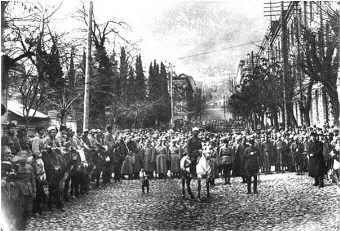 Im goldenen Zeitalter, also etwa im 10. Jahrhundert wurden die beiden Landesteile vereint und gehörten lange Zeit zum byzantinischen Reich. Nach dessen Niedergang gehörte Georgien zum osmanischen, später zum persischen und schließlich zum russischen Reich. Am 26. Mai 1918 erklärte sich Georgien unabhängig. 1921 wurde die junge Republik von der roten Armee besetzt und der Sowjetunion eingegliedert. Die rote Armee in Tiflis Nach der Unabhängigkeit des Landes kam es zwischen Dezember 1991 und Januar 1992 zu einem Militärputsch gegen den damaligen Präsidenten Swiad Gamsachurdia, dem so genannten "Tifliser Krieg". Am 9. April 1991 erklärte sich nach dem Verfall der Sowjetunion das Land wieder für selbstständig. Innerhalb des Landes kam es nach der Unabhängigkeit zu Auseinandersetzungen in Abchasien und Südossetien. Noch heute hat die Zentralregierung nicht die volle Kontrolle über das gesamte Land und diese Provinzen. Georgiens zweiter Präsident war der ehemalige sowjetische Außenminister Eduard Schewardnadse. Ihn löste Michail Saakaschwili in der "Rosenvevolution" im November 2003 ab. Im Januar 2004 wurde Saakaschwili mit 96 % der Stimmen zum neuen Präsidenten gewählt. Heute ist Georgien eine demokratische Republik mit einem stark ausgerichteten Präsidialsystem. Ziele der neuen Regierung sind bis 2009 ein höheres Wirtschaftswachstum und der Beitritt zu Nato und europäischer Gemeinschaft. Georgien ist Mitglied in den folgenden internationalen Organisationen: UNO, GUUAM, GUS, OSZE, IWF, Weltbank, EBRD, WTO, Europarat, EU-Programm Europäische Nachbarschaftspolitik (ENP), NATO-Programm Partnership for Peace (PfP), Schwarzmeer-Wirtschaftskooperation. Wird fortgesetzt ...