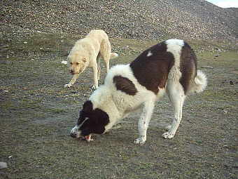 Das moderne dramatische Theater geht auf die Schauspieler und Regisseure Kote Mardshanischwili und Sandro Achmeteli zurück. Als musikalisches Großereignis findet jedes Jahr in Tbilissi der "Herbst von Tbilissi" statt, ein Festival klassischer Musik." Film Auch Georgiens Filmkunst und Filmindustrie ist sehr alt und sehr berühmt. So wurde am 16. November 1896 das erste Kino in Tiflis eröffnet. Und der erste georgische Film wurde 1912 gedreht. Leider ist mit dem wirtschaftlichen Niedergang auch die Filmindustrie eingebrochen. Viele georgische Regisseure arbeiten heute im Ausland. Die Georgische Küche ist bekannt und gerühmt für ihre Vielfalt und ihre Qualität. Aber zu einer gerühmten Küche gehört natürlich immer der richtige Gast. Und daher kommt sicher die berühmte Gastfreundschaft. Die georgische Küche kennt eine Unmenge von Gerichten und ist, gemessen an der Vielfalt der Auswahl, die abwechslungsreichste im ganzen Kaukasus. Dieser Ruhm, den sich die Georgier zuschreiben, fußt nicht auf nationaler Eitelkeit auf dem Gebiet kulinarischer Kreativität. Vielmehr erlaubt es das Klima, neun Monate im Jahr verschiedenes Sorten am frischem Obst, Gemüse, Kräutern und Gewürzen bereit zu halten. Saziwi mit allen Zutaten In der georgischen Küche spielt das Fleisch eine große Rolle. Dazu kommt Fisch aus dem Schwarzen Meer oder den Flüssen und Seen der kaukasischen Berge. Georgische Gerichte unterscheiden sich in jeder Provinz geschmacklich voneinander. Auch manche Fische gibt es nur in einem einzigen Fluss. Ein weltweit berühmtes Fleischgericht ist unter seinem russischen Namen "Schaschlik" bekannt geworden. In Georgien heißt der Spieß mit richtigem Namen Mzwadi, seine Heimat ist Kacheti. Wasser Foto: Irma Berscheid-Kimeridze Im Kaukasus und anderen georgischen Gebirgszügen entspringen einige Quellen, die für den Geschmack ihres Wasser, ihre Gesundheit und ihre Heilkraft berühmt sind. Zu den auch im Ausland bekannten Quellen zählen die von Bordjomi. Auf ihnen gründet sich auch der Ruf der Stadt als Kurort. Die Quellen wurde im Jahr 1829 von Soldaten eines Grenadierregimentes entdeckt, die in der Region stationiert waren. Heute ist Bordjomi ein Kurort, in dem das Wasser eine wichtige Rolle für den Heilprozess spielt. Es wird bei Krankheiten des Magen-Darm-Traktes, bei Stoffwechselstörungen und Herz-/ Kreislauferkrankungen. Hirtenhunde Foto: Hans-Heiner Buhr In den Halbhöhenlagen, und in den Steppengebieten des Landes gibt es auch heute noch Viehwirtschaft. Um die Herden zu schützen gegen zwei - und vierbeinige "Räuber", benutzen die Hirten immer noch Hirtenhunde. Daher zählt Georgien wie der gesamte Kaukasus zu den Ursprungsländern des Kaukasischen Owtscharkas. Eine Rassebeschreibung dieser Hunde findet sich in der Hirtenhundewelt. Die Zucht der Hunde ist sehr unterschiedlich. So gibt es eine ganze Reihe von Züchtern, die Kaukasen als Wach- oder Haushunde züchten. Diese Hunde sind im Zuchtbuch registriert und besitzen Ahnentafeln. In den Bergen bekommt man mit etwas Glück auch Hunde direkt bei den Hirten. Dies sind reine Arbeitshunde. Entgegen der allgemeinen Meinung, Arbeitshunde seien "halbe oder ganze Bestien", kann man auch diese mit einer entsprechenden Sozialisierung als Haus- und Hofhund halten. Der kynologische Verband des Landes ist international anerkannt, so dass Hunde aus Georgien innerhalb der FCI gehalten und in der Zucht eingesetzt werden können. Dies schreibe ich deswegen, weil die Zucht in Deutschland dringend einer Auffrischung bedürfte. Eine aus Georgien stammende Hündin wurde von mir an eine Züchterin vermittelt. Auf die Entwicklung ihrer Nachzucht bin ich sehr gespannt. Georgische Kaukasen sind sehr unterschiedlich, man findet im Land den langhaarigeren Bergtypen und den sehr kurzhaarigen Steppenkaukasen. Letzterer wird sehr häufig mit Centralasiaten verwechselt. Denn auch den findet man in Georgien. Bei manchen Hunden habe ich den Eindruck, Kaukase und Asiat werden vermischt. Anreise Flugzeit von Deutschland nach Georgien ca. 4 Stunden. Direktflüge gibt es von Köln-Bonn, Frankfurt und München aus. Reisezeit per PKW über Italien, Fähre (zum Beispiel ab Venedig oder Ancona nach Igoumenitsa in Griechenland), Griechenland, Türkei nach Georgien bis Tbilissi: Entfernung ca. 3.900 km Berlin-Tbilissi, Reisedauer ca. 5 - 7 Tage, abhängig vom Reisetempo. Die Russisch-Georgische Landgrenze kann derzeit von Nichtgeorgiern und Nichtrussen nicht überquert werden. Ebenso ist die Durchquerung Abchasiens auf dem Landweg nicht möglich. Sicherheit Dazu schreibt Hans-Heiner Buhr: