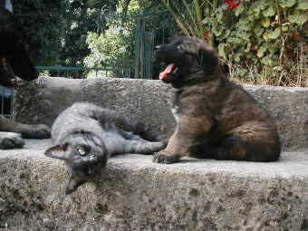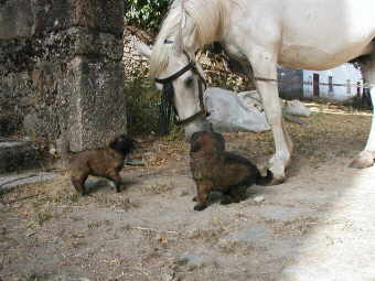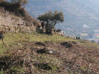 Vorletztes Jahr war ich Anfang Juni in Dortmund (Welthundeausstellung) und habe ein paar Listenmitglieder kennen gelernt. Das hat mich sehr gefreut. Leider kann ich wegen all meinen Hunden kaum fort und habe es immer sehr eilig, wieder zurück zu sein. Auch meine Katzen vertragen es schlecht, wenn ich nicht da bin. Dann bekommen sie untereinander Krach und manche kommen nicht mehr nach Hause. In meiner Abwesenheit kommt meine Hausangestellte (Frau eines Hirten) zweimal am Tag, die Hunde und restl. Tiere zu versorgen." Frage: Und wie sieht es mit wilden Tieren aus und welche gibt es, wenn man so abgelegen wohnt? Suzette: "Ja, wir haben wilde Kaninchen und auch sehr viele Füchse. Diese kommen nachts ganz nah zu den Hunden und lassen dort ihren Kot, deshalb weiss ich es, denn der Fuchskot ist anders. Wenn ich nachts die Hunde wie wild bellen höre, dann weiss ich, dass der Fuchs vorbei geht. Letzten Winter gingen zwei Füchse in den Pferdestall schlafen, besonders als es sehr stark regnete. Der Stall roch sehr stark nach Fuchs und die Katzen gingen nicht mehr in den Stall. Als ich am Morgen hinging, rannten die Füchse weg, sie sind sehr sehr scheu. (Ich rede mit ihnen schweizerdeutsch, nenne sie Fuchsli, aber es nützt nichts)." Frage: In Ländern wie Deutschland spielt die sogenannte Prägung oder Sozialisierung eine große Rolle. Wie hält und erzieht man Estrela in Portugal? Suzette: "Heute war ein Holländer hier und interessierte sich sehr für die Hunde und die Hirten. Er stellte mir auch diese Frage: wie machen es die Hirten, um die Hunde an Ihre Arbeit zu gewöhnen? Ich sagte ihm, das ist dasselbe, wenn sie einen Hirten fragen würden, wie trinken sie ein Glas Wasser? Das ist so selbstverständlich, dass die Hirten keine Sekunde ihres Lebens darüber nachdenken. Ein Beispiel: Der Hirt hat die Schafe gesammelt und mit einem Netz aus Seil (das verlegt werden kann) eingezäunt, während er ins Dorf geht oder zur Familie. Er will, dass die Hunde bei der Herde bleiben. Es gibt manchmal Hunde, die versuchen dem Hirt nachzulaufen. Was macht der Hirt, um dem Hund zu zeigen, dass er dort bleiben soll? Ganz einfach, er wirft Steine nach dem Hund, bis der Hund begreift, dass er dem Hirt nicht folgen soll. Anderes Beispiel: Der Hirt wirft das Fressen in einen Trog für alle Hunde. Es kann vorkommen, dass die Hunde um das Futter balgen. Der Hirt löst das Problem ganz einfach: ein Fusstritt dem Hund, der die anderen nicht ranlässt und der Hund hat dies auch sofort begriffen. Das ist natürlich nicht zu vereinbaren mit unserer modernen Auffassung von Hundeerziehung. Der Hirt erzieht den Hund nicht, wenn der Hund dem Hirt nicht passt, dann gibt er ihn fort oder tötet ihn. Somit selektiert der Hirt ungewollt die Hunde, die sich diesem Leben anpassen und gute Hirtenhunde sind. Die Welpen kommen im Schafstall zur Welt und der Geruch der Schafe ist ihnen seit ganz klein vertraut. Sehr oft saugen die Welpen die Milch der Ziegen (wie Zicklein) und die Herde gehört ihnen, die sie verteidigen. Da kein grosser Kontakt zum Hirt besteht, fühlen sich die Welpen in der Herde sicher und verlassen diese kaum." Frage: Aber irgendwie lernen doch die Hunde, wie es mit ihnen und den Hirten funkrioniert, oder ist das so eine Art "Selbstlernen"? Suzette: "Komisch, die portugiesischen Hirten kümmern sich praktisch nicht um die Hunde, ich würde sogar behaupten, dass sie keine Ahnung haben, wie man einen Hund dressiert. Wenn der Hund etwas stiehlt, dann schlägt er ihn. Benimmt sich der Hund richtig, dann mag er ihn. Entfernt sich der Hund zu weit, ist das sein Problem, wie er die Herde wieder findet. Wenn ein Hund sich zu oft und zu sehr entfernt (um manchmal Futter zu suchen, denn sie haben Hunger), dann mag das der Hirt nicht und gibt ihn weg. Der Hirt behält nur die Hunde, die er gut findet und sich so benehmen, wie er will. Die Hunde sind praktisch nie angebunden." Frage: Eigentlich beißt es sich ja ein wenig, wenn man Hirtenhunde noch für ihre ursprünglichen Aufgabe züchtet und auf der anderen Seite aber auch versucht, Familienhunde aus ihnen zu machen. Suzette: "Ich mache mir auch Gedanken, ob arbeitende Hirtenhunde, oder Arbeitslinien, auch gute Familienhunde geben. Denn die Voraussetzungen und Erwartungen sind sehr verschieden. Der Hirt mag, wenn die Hunde sehr wachsam sind und viel bellen, wenn sie etwas sehen. Als Familienhund ist das Bellen bei allem was der Hund hört nicht allzu erwünscht. Der Hirt mag misstrauische Hunde, die Familie mag sympatische Hunde, die sich leicht anfassen lassen. Alles Gegensätze. Durch die Sozialisation kann man den Hund in die gewünschte Richtung "erziehen". Frage: Kann es denn vorkommen, daß ein Hund nicht geeignet ist als Familienhund und kann man ihn dann evtl. wieder in eine Herde integrieren? Wenn ja, gibt es dafür Beispiele? Suzette mit einem Beispiel: "Einmal hatte ich eine junge Hündin für mich behalten. Aber beim Heranwachsen wurde sie sehr misstrauisch, bellte unfreundlich die Besucher an und wollte sie gar beissen. Ich war verzweifelt, denn die Leute besuchen meine Hunde und mögen, dass die Hunde sich freundlich benehmen. (Die Hunde wissen genau wer die üblichen Besucher sind und ob jemand andere Absichten hat.) Da beschloss ich, die Hündin, sie heisst Gentiana, einem Hirten zu geben, der die Hunde einigermassen gut hält und regelmässig füttert (aber längst nicht wie wir es tun).Schweren Herzens übergab ich die Hündin. Die Anpassung war nicht einfach. Zweimal ging die Gentiana verloren. Ich suchte sie in den ganzen Bergen und fragte alle Touristen, voller Sorge. Aber nach ein paar Tagen ging sie zum Hirten zurück. Heute ist sie total als Hirtenhund integriert und der Hirt ist sehr zufrieden. Sie verlässt die Herde nie. Einmal begegnete sie mir, als die Herde den Weg hinter meinem Haus benutzte. Die Gentiana kam auf mich zu um mich zu begrüssen, ich war voller Sorge, dass sie nun bei mir bleiben wollte und dachte schon nach, was ich dem 
