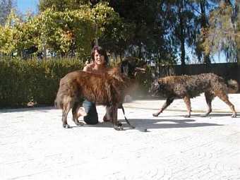 Interview mit Suzette Preiswerk da Mota Veiga, Präsidentin des portugisischen Estrela Clubs 5. Teil Rüde Kazan Frage: In Deutschland ist man der Meinung, in anderen Ländern gäbe es keinen oder nur einen schlechten Tierschutz. Mal davon abgesehen, daß wir nicht mit Fingern auf andere zeigen sollten, denn hier gibt es genug Elend, wie ist das denn in Portugal? Suzette: "Hundevermittlung in Portugal: Hier haben wir längst nicht so schöne Tierheime wie in Deutschland. Tierheime sind sogar Mangelware, werden zum Teil von privaten Hundeliebhabern geführt mit viel persöhnlichem Engagement, aber die Menge Hunde, die aufgenommen sind, können gar nicht eine individuelle Pflege bekommen. Das neue Gesetz verpflichtet die Gemeinden, Tierheime zu haben und diese unterstützen deshalb diese Privaten, da dies so billiger ist. Gerade vorhin kamen Jugendliche mit einem kl. Welpen auf dem Arm, den sie gefunden haben. Es war ein Estrela, aber nicht einer von den Reinrassigen, er sah etwas mickrig aus. Ich gab dem Hund ein Entwurmungsmittel und Frontline gegen Flöhe (sah zwar keine) und sagte, sie sollen sich erkundigen, wem er gehören könnte und eventuell jemand für ihn finden. Ich kann unmöglich jeden fremden Hund aufnehmen, denn bin schon ganz ausgelastet. Finde aber oft jemand, der einen aufnimmt. Die Hunde, die niemand aufnimmt, sammeln sich meistens bei der Tankstelle, wo ihnen manche Leute (ich auch) Futter bringen, manchmal wird ein hübscher Hund von einem vorbeifahrenden Auto mitgenommen, die Erbarmen haben. Die anderen leben bei der Tankstelle und drehen zwischendurch eine Runde. Es stört hier niemand, dass ein Hund frei herum geht. Wenn ein Hund sich sympathisch machen kann und so lieb guckt, findet er jemand, der sich seiner annimmt. Es hatte letztes Jahr eine verwilderte Hündin, die extrem scheu war. Ich entdeckte im Dezember, dass sie auf meinem Grundstück (das 7 ha gross ist) Junge bekommen hat, unter einem Dornbusch unter freiem Himmel, man kam kaum heran. Ich fragte umher, wer einen kleinen rassenlosen Hund wolle, niemand meldete sich. Dann kam die Karnevalszeit und ich hatte einen Stand an einer lokalen Messe in Manteigas. Ich nahm die 3 kl. Welpen kurzerhand auf den Stand und in einer Stunde hatte ich Besitzer für sie gefunden. Z. B. kam ein Pfadfinder und fragte: "Darf ich diesen Hund meinen Eltern zeigen?", ich sagte, ja und er kam nicht mehr damit zurück. Natürlich kann ich nicht garantieren, dass diese 3 kl. Welpen in allerbeste Plätze kamen, aber die Leute interessierten sich doch sehr und ich hoffe das Beste. Einen andereren kleinen Welpen nahm ein alter Mann, der ihn den ganzen Tag auf dem Arm in der Messe herumtrug. Am anderen Tag zeigte er mir einen blutigen Finger, der Hund hätte ihn gebissen, als er ihn während dem Fressen streicheln wollte. Ich erklärte ihm, diese Hunde hätten schon so stark Hunger gehabt, dass man sie während dem Essen lieber nicht anrühren soll. Er war aber ganz stolz darauf." Frage: Du kannst also Tierschutz und Zucht vereinbaren? Bei uns heißt es oft von Tierschützern, solange die Tierheime so voll sind, brauchen wir keine Züchter. Suzette: "Ich finde es immer gut, wenn jemand ein Tier vom Tierheim nimmt und ermuntere immer dazu, wenn man mich fragt. Trotzdem braucht es auch die Züchter, nicht um überheblich auf die anderen runterzuschauen, aber die Rassen müssen erhalten werden. Ich züchte gern (würde fast sagen leidenschaftlich) und freue mich riesig bei jedem Wurf. Es sind für mich kleine Babies und ich freue mich über deren Entwicklung. Es ist vielleicht ein Muttertrieb, den ich so auslebe, wer weiss (obschon ich zwei Kinder in die Welt gestellt habe). Würde ich keine Rassenhunde züchten, wüsste ich nicht was machen mit so vielen Hunden, denn es gäbe keine Nachfrage.. So kann ich sie doch gut platzieren, denn ich habe eine Warteliste und kann es mir erlauben die Leute auszusuchen. Es freut mich immer riesig, Nachrichten zu erhalten, wie es den Hunden geht und verbringe eine Zeit des Tages mit Telephonieren etc. Es kommt auch oft Besuch vorbei, um die Hunde zu zeigen oder sonst etwas. Deshalb finde ich es keinen Missbrauch von Tieren. Leider gibt es auch viele schlechte Züchter, deshalb der oft schlechte Ruf. Ich tue mein Möglichstes, den Ruf zu korrigieren. Von meinen Hunden ist noch nie einer in ein Tierheim gekommen! Ich finde immer jemand, der einen Hund übernimmt, falls jemand sich aus irgend einem Grund von seinem Hund trennen muss. Würde ich Mischlinge züchten, sähe die Situation anders aus." Hündin Tuka Frage: Was wird denn gesetzlich verändert, um den Tierschutz zu verbessern? Suzette: "Es wurde jetzt ein Gesetz verabschiedet, dass bis 2006 alle Hunde ( auch Mischlinge) Microchip haben müssen. Dann wird es schwieriger, seine Hunde auszusetzen, denn man kann anhand vom Microchip den Besitzer finden und strafen und Leute werden sich besser überlegen, ob sie sich einen Hund zutun. Ich denke, das wird ein ganz grosser Fortschritt sein. Deshalb denke ich, es tun sich viele Dinge. Nur mit diesen Hunde-Ostimporten, sagen wir so Kraftfahrzeuge voller Welpen, die dann durch Hundehändler gehandelt werden, das ist ein Riesenproblem (das Portugal nicht betrifft), über dieses soll man sich den Kopf zerbrechen und Lösungen finden." Frage: Kommen wir zu einem Lieblingsthema eines unserer Listenmitglieder, nämlich HD. Gibt es in Portugal die Möglichkeit zu röntgen und wie wird das gehandhabt? Suzette: "In Portugal ist man dran, ähnliche HD-Richtlinien aufzustellen wie in den anderen Ländern. Mogeln kann man dabei unmöglich, weil die X-ray Bilder von 3 Vet. Spezialisten unhabhängig beurteilt werden. Manche TA sind gar nicht genug spezialisiert, um genaue HD-Röngten-Aufnahmen zu machen. Zur Zeit ist es noch freiwillig , aber die meisten Züchter haben die Hunde schon geröngt und können sich nun darauf einstellen. Diese grossen Frage: Du sagst, wenn man einen Hund mit HD richtig aufzieht, bzw. ihn r