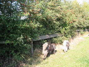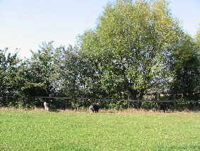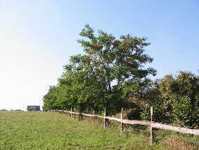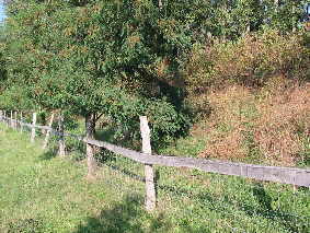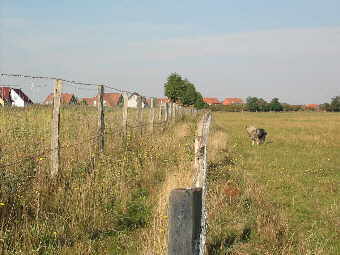 Blick nach "draußen" Zäune und Hecken - Die naturnahe Einzäunung eines Hirtenhunde-Reviers Wer kennt das nicht: man will seinen Hund artgerecht frei laufen lassen - ein großes Grundstück als Revier ist vorhanden - und plötzlich ist er weg, der Hirte der Herden und beste Freund des Menschen. Es ist ärgerlich, wenn man dann den Hund wieder bei Nachbarn, im nächsten Tierheim oder in der freien Natur suchen muß. Wenn man über dieses Thema schreibt, muß man sich wieder den Charakter der Hirtenhunderassen vor Augen führen, bei denen manche Rassen ein Gebiet als Revier ansehen, soweit sie sehen können. Der Drang, das Revier zu "inspizieren" oder die Jagd auf einen "Eindringling" (kleinere Wildtiere oder auch die leidigen Heißluftballons), führen bei einer unzureichenden Grundstücksbefestigung dann zu o. g. "Ausflügen". Die Haltung eines Hirtenhundes in einem westeuropäischen Industrieland zum Zwecke der Bewachung von Herde, Haus und Hof in der Land- und Forstwirtschaft sowie in der Familie unterliegt anderen Kriterien als zum Teil noch heute in den Ursprungsländern, z. B. Rumänien. Während in den Ursprungsländern die Hunde mit den Hirten die Herde begleiten und sie abends in Pferche oder Gehege treiben, sind hierzulande "Herden" auf Höfen und Grundstücken mit unveränderlichen Grenzen zu bewachen und ggfs. gegen Eindringlinge zu verteidigen. Füchse, wildernde Hunde - und jetzt mancherorts auch wieder Wölfe -, selbst zweibeinige Eindringlinge gilt es, schon durch die Präsenz der Hirtenhunde am Durchführen ihrer Taten zu hindern. Dies klingt sicher in den Ohren von Hundehaltern in Städten und Gemeinden unglaublich, aber ich schreibe aus Erfahrung. Und wer hat nicht die Nachrichten im Fernsehen und der Presse über die Brutalität der berüchtigten Pferderipper gesehen. Holzbohlen-Weidezäune Somit sind wir wieder bei den Grundstückseinfriedungen, die nach außen schützen sollen und nach innen sichern. Nun hängt die Beschaffenheit eines solchen Zaunes immer von der Größe des Grundstückes ab und von den Möglichkeiten des Eigentümers. Ein mehrere Hektar großes Grundstück läßt sich wohl kaum ummauern, wäre aber die sicherste Lösung. Als Material für Zäune sollten immer ortstypische oder natürliche Stoffe verwendet werden. So bieten sich Holz- und Wildschutzzäune in Verbindung mit Hecken geradezu an. Letztgenannte sind nicht nur eine ästhetische Bereicherung, sondern haben auch eine hohe Bedeutung im Haushalt der Natur. Wenn man Hirtenhunde frei laufen lassen will, ist die beste Lösung ein Doppelzaun, damit Spaziergänger nicht belästigt werden und - wenn von außen einmal der Zaun mutwillig zerstört wurde - dann hält ja noch der zweite. Und ganz wichtig: in einem Doppelzaun werden die Pflanzen, die dann mal eine Hecke bilden sollen, vor dem Fraß der Weidetiere geschützt. Einfacher Doppelzaun, Holzpfähle + Knotengeflecht (Wildschutzzaun) Die Bepflanzung eines solchen Doppelzaunes mit einer Hecke aus heimischen Pflanzen bietet folgende Vorteile: Sichtschutz, Schmutzfilter und Lebensraum für zahlreiche Tiere. Unseren Durchschnittsgärten mangelt es an Artenvielfalt, da sie vorrangig aus Exoten bestehen. Die exotischen Gehölze bieten aber der Natur keine verwertbaren Früchte. Entweder sind die Ziersträucher gänzlich unfruchtbar gezüchtet (Zierkirsche, Gefüllter Schneeball) oder ihren Früchten fehlen die entsprechenden Abnehmer. Manche Sträucher sind für unsere Tierwelt wiederum völlig wertlos, da ihre Früchte im hiesigen Klima nicht ausreifen (Rhododendron, Perückenstrauch, Scheinhasel). Im Gegensatz dazu bieten unsere heimichen Gehölze der Tierwelt über das ganze Jahr einen mehr oder weniger reich gedeckten Tisch. Als weitere Gründe für die Wahl heimischer Gehölze sprechen Unempfindlichkeit, niedrige Kosten und Erhaltung der Arten. Weil Wildsträucher anspruchsloser und widerstandsfähiger sind, kann man auf Kunstdünger und giftige Spritzmittel verzichten.