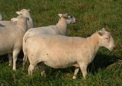Rechts eine Suffolk-Schaf, der Fleisch-Vererber, links eine