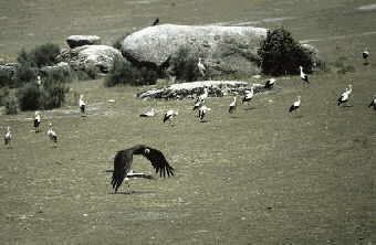 Europäische Nomaden Auf eigenen Wegen wandern Schafherden quer durch Spanien Staub wirbelt von der alten Steinbogenbrücke, das Rauschen des Rio Tormes geht im Bimmeln der Kuhglocken unter. Kurze Befehle in kehligem Spanisch halten die Schafe zusammen. Zehn Tiere nebeneinander zockeln auf gerade einmal dreieinhalb Metern zwischen den Steinbrüstungen flott zum Ostufer des Flusses. Aus dem Staub tauchen in der Mittagshitze immer neue Tiere auf, die Herde scheint endlos. Mächtige Mastino genannte Hirtenhunde traben friedlich zwischen den Schafen. Acht Minuten braucht die wollige Karawane, dann legt sich der Staub langsam wieder, die Kuhglocken verbimmeln in der Ferne, der Rio Tormes läßt sein Rauschen wieder hören. Dreitausend Schafe haben den Fluß im winzigen Marktflecken Puente del Congosto im äußersten Südwesten der spanischen Provinz Salamanca überquert. Ein Stück weiter warten sie als wiederkäuende Wollknäuel auf einem gekennzeichneten Rastplatz unweit des Ufers auf die kühleren Stunden des Spätnachmittags, während die Hirten ihr Mittagessen verspeisen. Sechs Wochen ist die Herde aus der Extremadura im Westen Spaniens unterwegs, bis sie in 2500 Metern Höhe unter den Gipfeln der Picos de Europa hoch oben im Norden der iberischen Halbinsel ihre Sommerweiden erreichen. Wenn Ende Mai das Gras unter den Dehesa genannten lichten Steineichenwäldern ihrer Heimat vertrocknet und die Landschaft an die Serengeti Ostafrikas erinnert, brechen die Herden auf und ziehen mit dem Frühling nach Norden. Oben auf den Bergen bleiben sie dann, bis die ersten Nachtfröste das Wachsen des Grases stoppen. Bis zum Jahresende zieht die Herde wieder nach Süden, dort lassen die Regenfälle des Herbstes inzwischen wieder das Gras wachsen und sorgen für frisches Futter. Dehesa in der Provinz Avila Seit zweitausend Jahren wandern die spanischen Hirten als Halbnomaden zwischen ihren Sommer- und Winterweiden. Transhumanz nennen Geographen diese spezielle Art der extensiven Bewirtschaftung, die hervorragend an die ökologischen Verhältnisse des Landes angepaßt ist. Bereits im siebten Jahrhundert wurde schriftlich festgelegt, auf welchen Wegen die Schafe durch das Land getrieben werden dürfen. Königliches Recht sichert seither ein 125.000 Kilometer langes Netz von Wanderwegen für Tiere, die zwischen zwanzig und 75 Meter breit sind. Mit fast fünftausend Quadratkilometern bedecken diese Cañadas genannten Triftwege eine Fläche, die größer als das Saarland ist. Gegen Ende des letzten Jahrhunderts aber ersetzte der Güterwaggon der Eisenbahn die lange Wanderung, später erwiesen sich die Ladeflächen von Lastkraftwagen als scheinbar ideales Transportmittel für die Herden. Immer seltener tauchten Schafe auf den Cañadas auf, Nachbarn bemächtigten sich des inzwischen scheinbar herrenlosen Landes. Siedlungen wucherten über die Triftwege, Müllkippen wurden auf ihnen angelegt oder Straßen darauf asphaltiert. Ein einmaliges Biotop, das gleichzeitig die Naturreservate in verschiedenen Teilen Spaniens miteinander vernetzt, begann zu verschwinden. Mehr als vierzig Pflanzenarten wachsen auf einem einzigen Quadratmeter einer Cañada, über sechzig Arten von Käfern und mehr als hundert Schmetterlingsarten sind auf den Schaftriften zuhause. Getreide-Dehesa in der Nähe von La Nava/Extremadura Der spanische Naturschützer Jesús Garzón und die Stiftung Europäisches Naturerbe Euronatur im deutschen Radolfzell am Bodensee wollten diese Entwicklung nicht akzeptieren und begannen Mitte der neunziger Jahre die Transhumanz wiederzubeleben. Im Rahmen eines "Natürlich Mobil" genannten Projektes sponsert Daimler Chrysler das Projekt, die Satellitenbild-Experten von Dornier Satellitensysteme am Bodensee erkunden die Cañadas aus dem Weltraum, die Zoologische Gesellschaft Frankfurt schießt Geld und Fachwissen zu. Auch die Hirten nehmen neben Wanderstock und Feldflasche moderne Technik mit auf die Wanderung. Über das Handy verständigen sich die Männer mit ihren Kollegen bei anderen Herden. Auf einem Anhänger schleppt ein Geländewagen die gesamte Ausrüstung zum abendlichen Lagerplatz der Herde. Ungefährlich ist die Reise aber nicht. Im Norden leben noch Wölfe, acht oder zehn Schafe holen die flinken Räuber in jedem Jahr. Deshalb laufen auch die mehr als Schaf-großen Mastino-Hunde mit, die ihre Herde verteidigen. Ein eisernes Stachelhalsband wehrt den tödlichen Biß jedes Wolfes an die Kehle ab, tiefe Narben auf der Schnauze eines Mastinos zeugen vom Kampf gegen die Raubtiere. Manche schwachen und kranken Tiere überstehen die Strapazen der Wanderung nicht, von ihren Kadavern ernähren sich wie seit Jahrtausenden auch heute Kaiseradler, Luchs, Wolf, Bär, Mönchs-, Gänse- und Schmutzgeier. Einige dieser durchweg gefährdeten oder vom Aussterben bedrohten Tiere nutzen die Cañadas auch als Wanderwege zwischen 150 wichtigen Großlebensräumen. So verhindert die wiederauflebende Transhumanz eine Isolierung der letzten Bestände gefährdeter Arten. In Spanien entsteht so ein Art "Wege-Nationalpark", der vor allem eines schützt: Eine sehr extensive, an Land und Klima angepaßte Viehhaltung, die sich auch heute noch rentiert. Für die Natur ohnehin. Aber auch für den Geldbeutel, die Nachfrage nach Fleisch von den Wanderschafen ist jedenfalls enorm. Auch der Mönchsgeier profitiert von den Schafwanderung - Text und alle Fotos: Roland H. Knauer Nachsatz Dieser Artikel ist bereits der zweite, den wir von dem Journalisten Roland Knauer, bekamen, und dafür und für die Bilder bedanken wir uns natürlich sehr. Diese Artikel finden wir auch deshalb sehr interessant, weil sie immer einen Bezug zu aktuellen Geschehnissen haben. Das Problem z. B. der alten Wanderwege quer durch Spanien wird sehr oft aufgegriffen und vielleicht oder ganz sicher haben all diejenigen einen Anteil an der Bewahrung dieser Traditionen, die sich an der Berichterstattung beteiligen. Die Redaktion [zurück] |