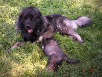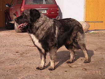 Ivo im Alter von 1 ½ Jahren Die Lösung des Problems sollte eine Partnerin für Ivo sein: möglichst eine Nichtverwandte, damit vielleicht ein Wurf Welpen geplant werden könnte. Abnehmer wären sicher dagewesen, denn Ivo war mit seinem Aussehen schon eine Seltenheit in unserer Gegend. Bemerkungen, wie: "Dieser Hund muß aber alt sein, so grau wie der aussieht!" hörte ich öfter und erklärte dann immer die Rassebeschreibung und Eigenschaften eines Hirtenhundes, die ich mittlerweile fast auswendig kannte. Unter Vermittlung des Rassezuchtvereins habe ich dann im Oktober 1996 Riva aus Kroatien bekommen (ihr wird natürlich ein eigenes Portrait gewidmet). Unser Ivo begrüßte sie aufs freundlichste und schien sich sichtlich zu freuen, von nun an nicht mehr allein zu sein.