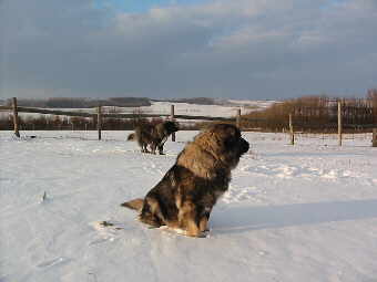 Guter Beobachtungsposten Die Zeit der HD-Diagnose war gleichzeitig die Zeit der endgültigen Rückkehr zum Einsatz als Hirtenhund in der Landwirtschaft. Die Umgewöhnung war eigentlich keine, denn sie verhielt sich so, wie "Gut, dann passen wir jetzt wieder auf die großen Tiere auf!". Oft werde ich gefragt, wie das denn so in der Praxis aussähe, mit der "Arbeit" der Hirtenhunde. Mal abgesehen von der reinen Begleitung bei der menschlichen Arbeit, also den Herdenkontrollen, den Fütterungen usw. ist das Betätigungsfeld der Hirtenhunde sehr vielfältig. Wobei viele dieser Arbeiten von allein übernommen werden, d. h. ohne bestimmte Ausbildung. Um hier einige Beispiele zu nennen: Als Hauptaufgabe ist natürlich die Hof- und Herdenbewachung zu nennen. Nun wären sicher Rinder in der Lage, sich dem hier in Mitteldeutschland als Raubwild vorkommenden Fuchs selbst zur Wehr zu setzen, aber besser ist immer, wenn keiner auf der Weide ist, um die Ruhe in der Herde nicht zu stören. Aber es gibt auch zweibeinige Räuber, die es auf lebende Tiere oder Inventar abgesehen haben. Leider mussten auch wir die Erfahrung des "Besuches" eines Pferdemörders machen. Zum anderen kann man "Herdenschutz" bei freilebenden Mutterkühen von Robustrinderrassen auch so interpretieren, dass man auf der Weide vor der Herde schützt. Mit viel Theater und Gebell werden die Rinder auf Distanz gehalten, wenn z. B. ein Zaun zu reparieren ist oder die Ernte der Streuobstwiese nach Hause gebracht werden soll. Sogar als Hilfe beim Treiben der Herde konnte ich vor allem Riva gewinnen. Wie ich bereits vor einigen Jahren an anderer Stelle schrieb, dass man Hirtenhunde nicht als Hütehunde einsetzen kann, ist der heutige Stand meiner Erfahrungen der, dass im Laufe der Jahre eine gewisse Mitarbeit, zumindest beim vor-sich-Hertreiben erreicht werden kann. Sogar den "Fersengriff", den eigentlich mehr die Hütehunde anwenden, konnte ich bei Riva beobachten. "Schafe nach Hause bringen!" Bei der vielen Zeit, die wir täglich intensiv verbrachten, bildete sich natürlich eine gewisse Vertrautheit heraus, wie alte Freundinnen, die sich aufeinander verlassen können. Vertrauensfördernde Rituale, wie das abendliche "zu Bett gehen" vertieften dann die innere Bindung noch. Während der kalten Jahreszeit verbrachte Riva die Nächte im Pferdestall mit direktem Zugang zum Wohnhaus. Je älter sie wurde, um so lieber nahm sie diese Schlafstätte an, an Tagen, an denen es schon sehr spät war, drängte sie nahezu, ins "Bettchen" zu gehen. Nicht selten legte ich mich dann mit zu ihr ins Stroh, und manchmal spielte und buddelte sie übermütig. Jeder Abend endete aber immer mit einer "Schmusestunde" - und morgens war das auch die erste Begegnung mit ihr, bevor sie wieder zu den "Jungs" 'raus ging. "Gleich geht's los ...!" Riva blieb eine unkastrierte Hündin bis zum Schluß, denn im Hinterkopf hatten wir immer noch die eventuell anstehendende Hüftgelenksoperation, und wir wollten sie nicht unnötig mit medizinischen Eingriffen/Risiken belasten. Ab einem Alter von 9 Jahren wäre für uns sowieso nur noch eine Kastration gesundheitlichem Erfordernis in Frage gekommen. Das Rudel (mit zwei kastrierten Rüden) ist mit diesem Umstand sehr gut zurecht gekommen. Während der "kritische Zeit" bekam sie bei unserer Abwesenheit eben Sonderaufgaben, z. B. beim Geflügelauslauf zu wachen, wo wir sie dann separieren konnten, ohne dass sie den Kontakt zu den anderen verlor - nur durch einen Maschendrahtzaun getrennt. Unter unserer Beobachtung ging auch diese Zeit ganz normal vorbei, mit einigen Ermahnungen den Rüden gegenüber, sie doch in Ruhe zu lassen (wegen der Hüfte). Eines der letzten Fotos auf der Winterweide, eine Woche vor ihrem Tod An einem Tag im März 2006 begann das Ende: als ich nachmittags mit meinem Auto den Hof befuhr, bellten die Rüden und schrie die Riva jämmerlich: ihr waren genau diesem Augenblick die Hinterläufe gelähmt! Es war nicht die HD, sondern ein eingeklemmter Nerv in der Wirbelsäule. Von da an pflegten wir sie rund um die Uhr in ihrer gewohnten Umgebung. Aber es sollte nicht sein. Sogar die Entscheidung des Zeitpunktes des Abschiedes hat sie mir abgenommen, indem sie nach 4 Tagen einfach eingeschlafen war. Danke, mein Mädchen, für die schöne Zeit! Dorette Knobbe [zurück] |