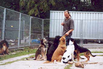 Teletaktgerät - ja oder nein? Vorwort Diesen Artikel haben wir mal vor Jahren bekommen und auch schon im ersten "Kaukasen-Blättle" veröffentlicht (Anm. d. Red.: Zeitung für die damalige Landesgruppe Baden-Württemberg im Kaukasischen Schäferhunde Club - KSHC). Er ist auch heute noch aktuell, denn immer noch werden Zwangsmaßnahmen angewendet, oder befürwortet. Dazu zählen natürlich auch Forderungen wie Leinen- und Maulkorbzwang, oder ein Halti und das berüchtigte Stachelhalsband. Deswegen denken wir, der Artikel passt ganz gut in die derzeitige Diskussion. Die Redaktion Völlig zwanglos Gehorsam gegenüber seinem Besitzer/in muss ein Hund lernen, er ist ihm nicht angeboren. Welpen werden beispielsweise von der Mutterhündin oftmals für unsere Begriffe recht grob gemaßregelt. Viele Kritiker der Hundeausbildung halten selbst ihre Tiere keinesfalls artgerecht. Ein Hund braucht zeitweise freien Auslauf, der ihm nur gewährt werden kann, wenn er folgsam ist. Ein Hund darf Menschen und andere Tiere weder gefährden noch belästigen. Diese Voraussetzung wird nur durch eine Gehorsamsschulung des Hundes erreicht, zu der für mich auch die Schutzdienstausbildung zählt. Ich bedauere die armen Vierbeiner, die nur an der Flexi-Leine ausgeführt werden. Bei Gehorsamsübungen wird grundsätzlich Zwang auf den Hund ausgeübt. Der Leinendruck veranlasst den Hund, so zu gehen wie es der Besitzer wünscht. Das Niederdrücken zwingt ihn zum "Sitz" oder "Platz". Das Wichtigste bei allen Übungen ist das Lob für den Hund, das die korrekte Übung belohnt. Das Loben darf allerdings nicht in einem oberflächlichen "Tätscheln" bestehen, es muss von Herzen kommen. Das Loben kann man noch mit Futter bzw. mit einem Spielball ergänzen. Mit diesen Grundregeln ist ein Hund unproblematisch zu schulen. Ihm macht der Unterricht Spaß. In meinem Verein, dem SSV Hirschbachtal, freut sich jeder von unseren z. Z. ca. 70 Hunden auf den Übungsplatz! Wir berücksichtigen natürlich bei der Ausbildung auch die Triebveranlagung der Hunde und gestalten dementsprechend die Schulung. Ich wundere mich, daß viele Spitzenleute im Hundesport ohne Teletaktgerät ihre Hunde nicht zu Spitzenleistungen bringen! Ihr Beispiel suggeriert vielen Hundebesitzern, daß sie mit diesem Gerät ihren Hund beherrschen könnten, ein fataler Trugschluss! Ich halte das Verhalten mancher Verbände für heuchlerisch, die offiziell das Teletaktgerät zur Ausbildung verbieten, dessen Gebrauch aber augenzwinkernd übersehen. Neben Stachelhalsbändern, vor allem angeschliffenen, gehört das Teletaktgerät für mich zur groben Zwangsausbildungsmethode, die in Einzelfällen erforderlich sein kann, aber nicht die Regel sein darf. Erstaunlich schnell gewöhnen sich die Hunde an Foltermethoden, die dann wirkungslos sind. Das Teletaktgerät wurde schon durch Funkverkehr ausgelöst, was für den Hund verheerend ist, da er einen absolut unverständlichen Stromstoß erhalten hat. Das Gerät kann zum Lernen einer Übung nicht eingesetzt werden, da der Hund ja verknüpfen muss, daß der Stromstoß ihn veranlassen soll, die geforderte Übung auszurichten, die er aber noch nicht einmal richtig kennt. Laienhaft ist deshalb der Glaube, ein Hund, der beim Heranrufen nicht kommt, würde durch den Gebrauch des Teletaktgerätes heranstürmen. Das Gegenteil kann eintreten, der Hund flüchtet panisch. Der Einsatz des Gerätes fordert eine große Erfahrung im Umgang mit Hunden und das ganz genaue Kennen deren Charaktere. Leider kenne ich viele Hunde, deren Besitzer glauben Hundekenner zu sein und die mit dem Teletaktgerät das Wesen ihres Hundes gebrochen haben. Ich lehne den Gebrauch des Gerätes ab. Ich bevorzuge die direkte Auseinandersetzung mit den Hunden, also die persönliche Korrektur des Besitzers beim Fehlverhalten des Hundes. Dies fördert den Gemeinschaftssinn zwischen Herr und Hund und führt zu einem hervorragenden Verhältnis zwischen beiden. Das Teletaktgerät kann bei verkehrs- und wildgefährdeten Hunden, die oftmals Wesensmängel haben, erfolgreich eingesetzt werden. Es ist deshalb aber nicht einzusehen, daß das Gerät ausschließlich im Jagd- und Diensthundebereich erlaubt sein soll. Auch hier wird das Gerät oftmals dilettantisch eingesetzt. Zum Schluss möchte ich feststellen: je besser das Verhältnis zwischen Besitzer und Hund ist, um so weniger Zwang ist bei der Schulung des Hundes notwendig. Günter Bosch Foto: Carsten Wolf [zurück] |