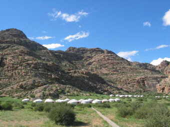 Das gemütliche Familien-Ger, die traditionelle mongolische Jurte, besteht aus dicken Filzlagen und einer festen Stofflage als äußerer Hülle, die vor Wind, Kälte und Regen und vor der Sommerhitze schützen. Der offene Dachkranz lässt frische Luft herein, im Sommer werden zusätzlich tagsüber die Filzlagen ein wenig hochgeschlagen.
