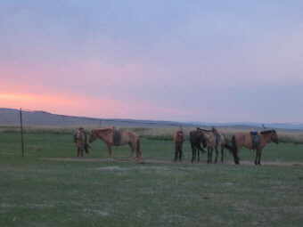 Das Land ist weit und dennoch keineswegs so leer wie man denken möchte: morgens gegen 6:00 Uhr fährt die Bahn über die Grenze und wir sehen Reiter, die auf ihren Pferden durch den kühlen Morgen galoppieren und vereinzelte Jurten, aus denen Rauch aufsteigt. In der Steppe grast eine Schafherde und der Hirt schläft am Hang des Hügels. So romantisch das scheint, das Leben der Nomaden ist hart und sie genießen die kurze Zeit des Sommers, die man draußen verbringen kann genauso wie das Vieh, das nun genug frische Nahrung findet.