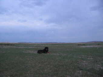 Außer Pferden besitzt die Familie auch Rinder und Schafe, sogar ein kleines Kamel ergänzt den Viehbestand. Und natürlich die Hunde. Drei schöne typisch mongolische Hirtenhunde, die schwarzbraunes glänzendes Fell haben und über den Augen zwei helle Flecken tragen. Zuverlässig bewachen sie die Herden und die Gers und schützen die Tiere sogar vor Wölfen.