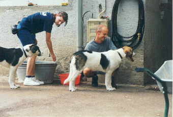Das gleiche gilt im Prinzip für den nächsten Hund. Zugeben möchte ich nur eines, wenn diese Hunde groß sind und eine gewisses Gewicht haben, würde ich sie nicht an Leute vermitteln, die mit diesen Äußerlichkeiten nicht klar kommen, denn ein "Supermodell" mit etwas über 50 Kg bekommt bei einem richtigen "Karwenzmann" dann Probleme, wenn der mal richtig Gas gibt. Daher läuft meine Frau nicht mit Gane, denn mit seinem Temperament kann sie ihn aus körperlichen Gründen nicht halten. Mit Leika ist das etwas anderes und daher laufen die beiden zusammen. Dieser Einwand gilt aber für alle Rassen, denn schließlich gibt es außer Hirtenhunderassen auch noch andere, die ein ähnliches Gewicht haben.