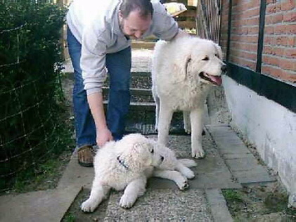 Egal ob mit eigenen Welpen oder fremden er ist ruhig und freundlich zu allen. Aber, was die Rasse auszeichnet: Sehr wachsam. Auch spielen, wenn Besuch kommt oder er zu Besuch ist, gehört dazu.